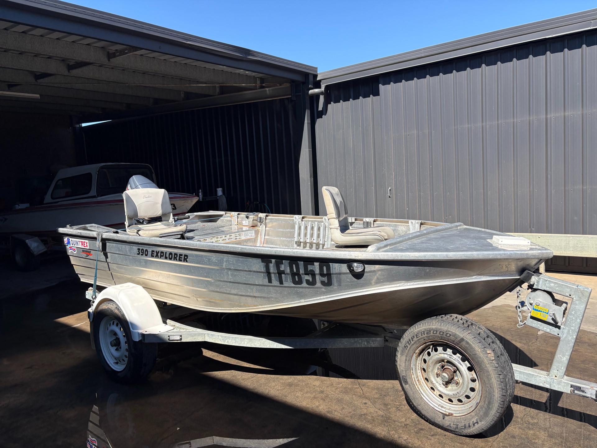 QUINTREX 390 EXPLORER YAMAHA 30HP 2 STROKE GALV TRAILER CUSTOM CASTING DECK CUSTOM FLOORING HUMMINBIRD 550 FISH FINDER 2X SEATS STEREO SYSTEM SPEAKERS ROD HOLDERS NAV LIGHTS TRAVEL COVER SPARE WHEEL JUST BEEN SERVICED